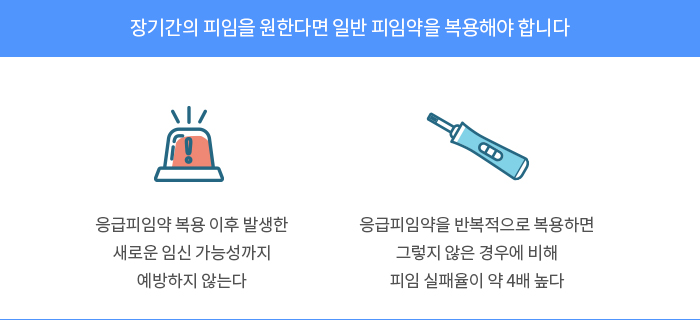 물론 피임 효과도 떨어집니다. 응급피임약을 먹어도 임신할 가능성이 높아진다는 의미입니다. 반복해 응급피임약을 복용하면 그렇지 않은 경우와 비교해 피임 실패율이 4배 정도 높다는 연구도 있습니다. 장기간 피임을 하려면 응급피임약이 아닌 일반 피임약을 복용해야 합니다.